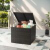 Zimtown Outdoor Storage Box Patio Wicker Deck Bench Storage, Rattan Bench, Container for Outdoor Indoor Brown