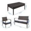 Introductions:Adopting high quality PE rattan and iron frame, it features stable, sturdy and durable. With soft cushion, it also can ensure softness and comfortable seating experience. It includes 2pcs arm chairs, 1pc love seat and 1pc tempered glass coffee table, which can meet your daily demand.