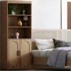 – 3 open shelves and a double-door bookshelf providing plenty of space for clothing, daily accessories, books