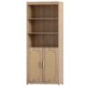 Zimtown Rattan 5-Shelf Bookcase with Doors, 3 Tier Open Bookshelf with Storage Cabinet, Home Decor Furniture for Home Office, Living Room, Bedroom